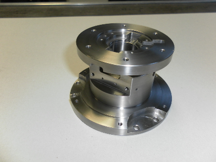 Titan Linsensatz mit Kugelsitzen für Keramikkugeln zur Isolation der einzelnen Bauelemente.Der Linsensatz ist das Kernstück eines neu entwickelten Laser Mikroskopes das für die Forschung konzipiert wurde.