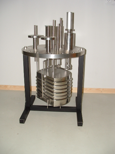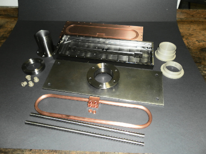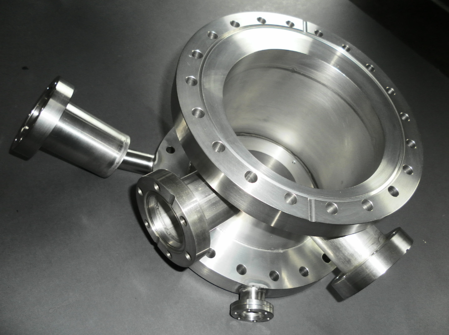 Edelstahl Topf mit CF Flanschen, der in Verbindung mit dem Titan Linsensystem zum Einsatz kommt.